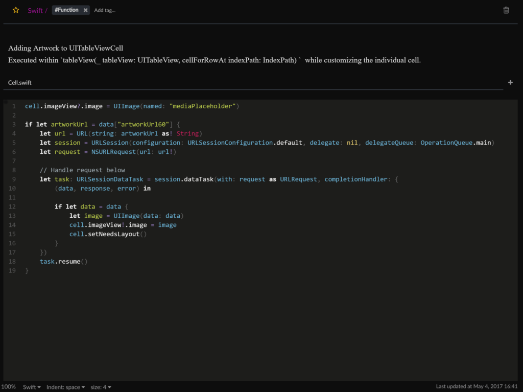 Markdown notes are an interesting case, which can be created by selecting “Markdown Note” instead of “Snippet” when creating a new document. Because of the way Boostnote approaches rendering of the Markdown notes, which is to render the document after the user has become inactive on the document, I was confused at first when my text editor would disappear, replaced with the rendered version while I took a five second break to consider how best to explain the code snippet. This isn’t an issue at all, simply just a different workflow than the standard preview in one window, source in other.